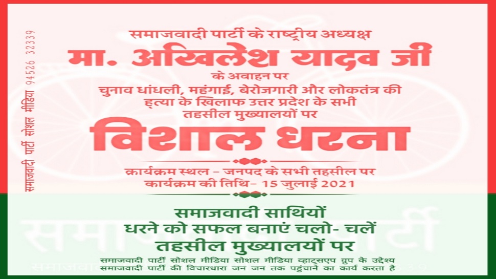 Read Moreलखनऊ: समाजवादी पार्टी ने 15 जुलाई को पूरे प्रदेशभर में धरना-प्रदर्शन का ऐलान किया है. जनपद की हर तहसील पर ये धरना प्रदर्शन होगा. सपा कार्यकर्ताओं से इसमें बढ़-चढ़कर भाग लेने की बात कही गई है.इसी सिलसिले में आज लखनऊ में एमएलसी की मीटिंग भी हुई थी. जिसमें सपा मुखिया अखिलेश यादव और प्रो. रामगोपाल […]