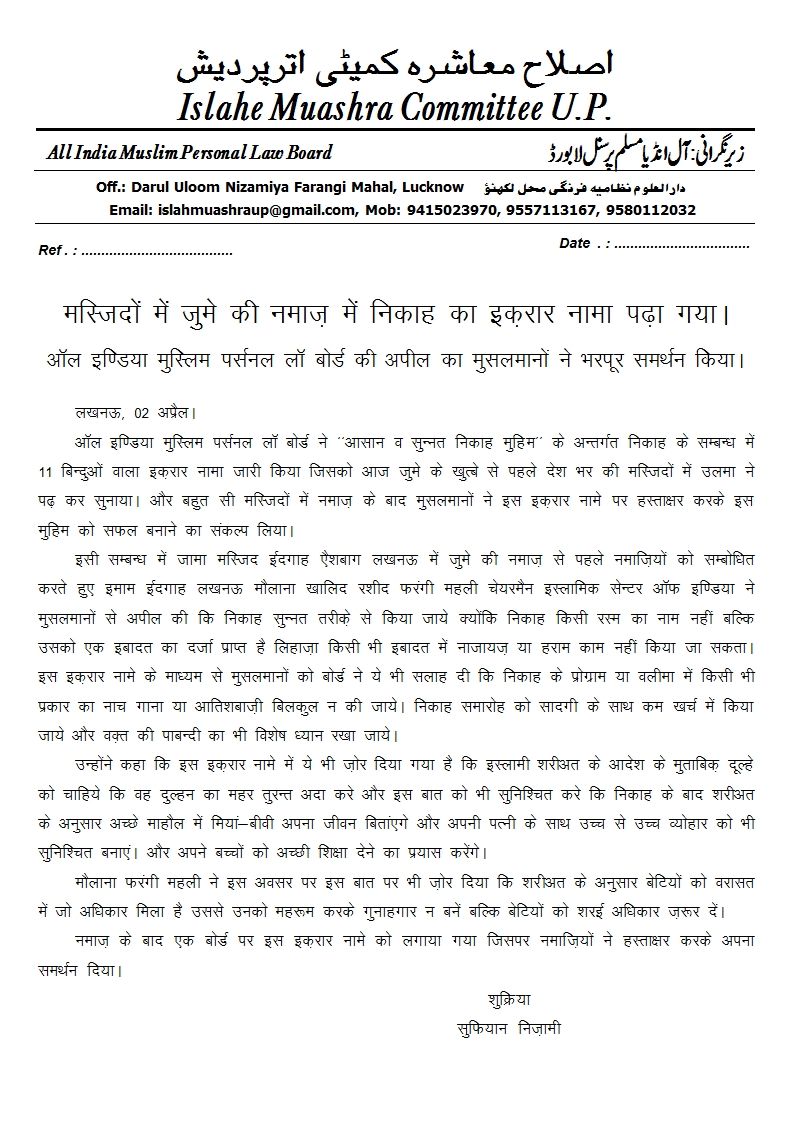 अच्छी पहल: फिजूलखर्ची रोकने और सादगी से निकाह के लिए ‘इकरारनामा’, फरंगी महली ने भी की ये अपील